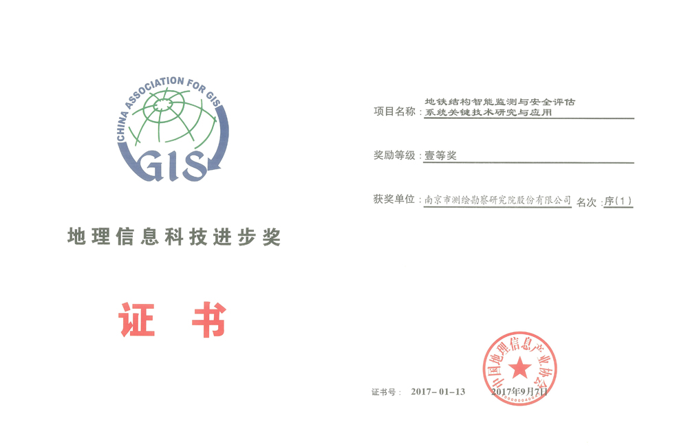 中國地理信息科技進步一等獎——地鐵結(jié)構(gòu)智能監(jiān)測與安全評估系統(tǒng)關鍵技術(shù)研究與應用