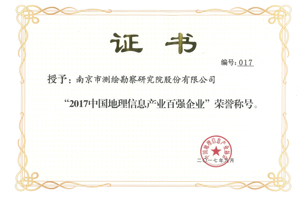 2017中國地理信息產(chǎn)業(yè)百強企業(yè)