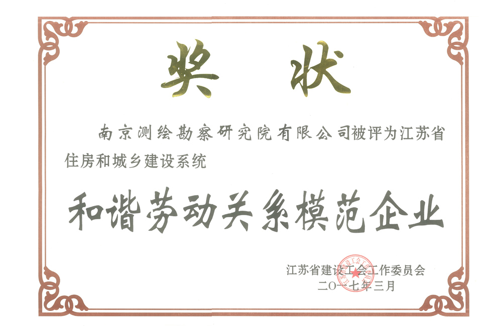 江蘇省住房和城鄉(xiāng)建設系統(tǒng)和諧勞動關系模范企業(yè)